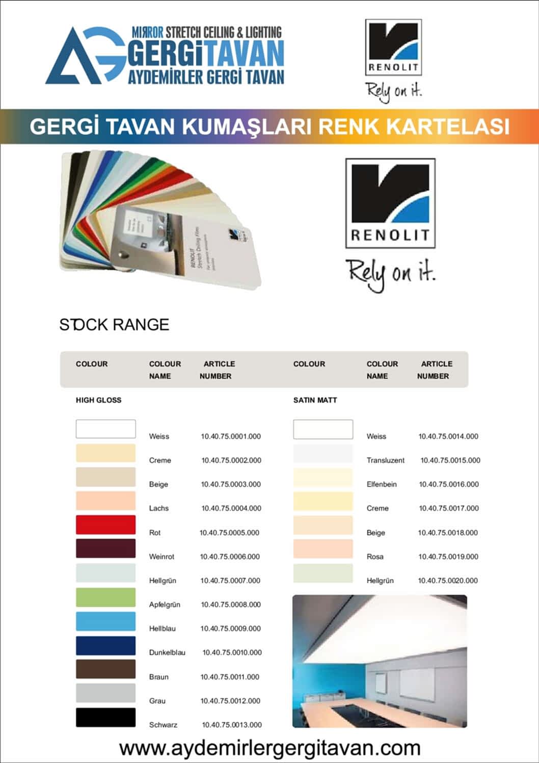 Renolit Gergi Tavan Ürünleri 10 YIL GARANTİLİ (Made in Germany)